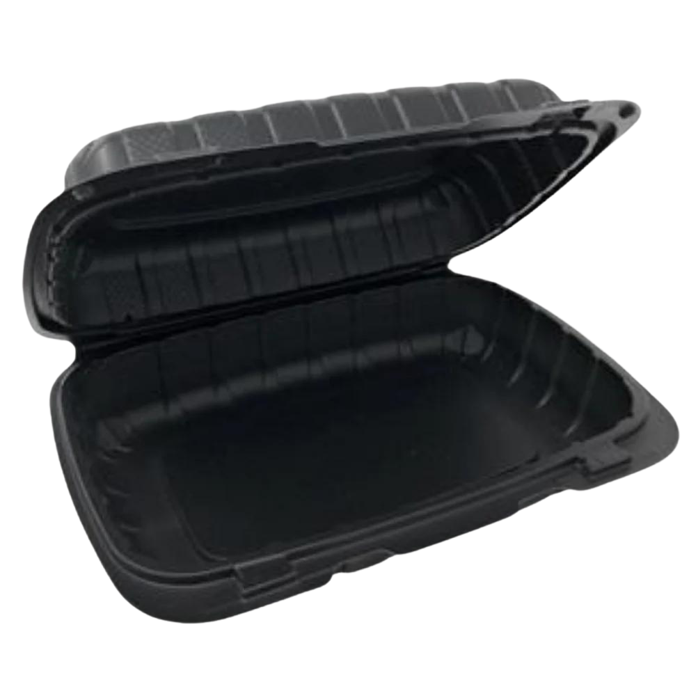 9" X 6" X 3" HOAGIE POLYPROPYLENE BLACK PLASTIC HINGED CONTAINER VENTED - 150CT