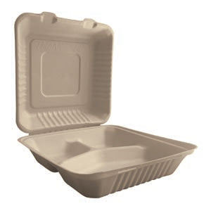 9"x9"x3" PFAS FREE ECO BIODEGRADABLE COMPOSTABLE 3 COMP HINGED CONTAINERS - 200CT
