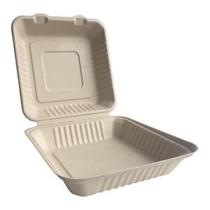 9"x9"x3" ECO BIODEGRADABLE COMPOSTABLE BAMBOO 1 COMPARTMENT HINGED CONTAINERS - 200CT
